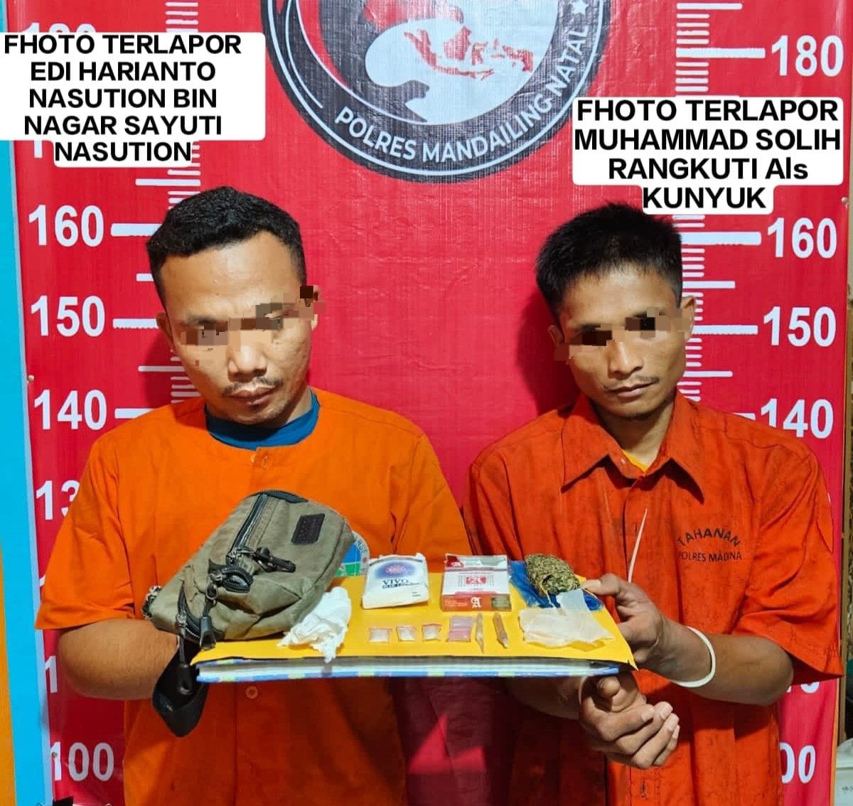 Kedua orang terduga bandar narkoba itu berinisial, yakni MSR alias Kunyuk (27) dan EHN (23), warga Desa Lumban Pasir, Panyabungan. Dari tangan keduanya, polisi mengamankan barang bukti berupa, 1,50 gram sabu-sabu dibungkus tiga plastik klip dan alat hisab sabu. Sementara dari EHN disita satu bungkus ganja kering 11,17 gram.