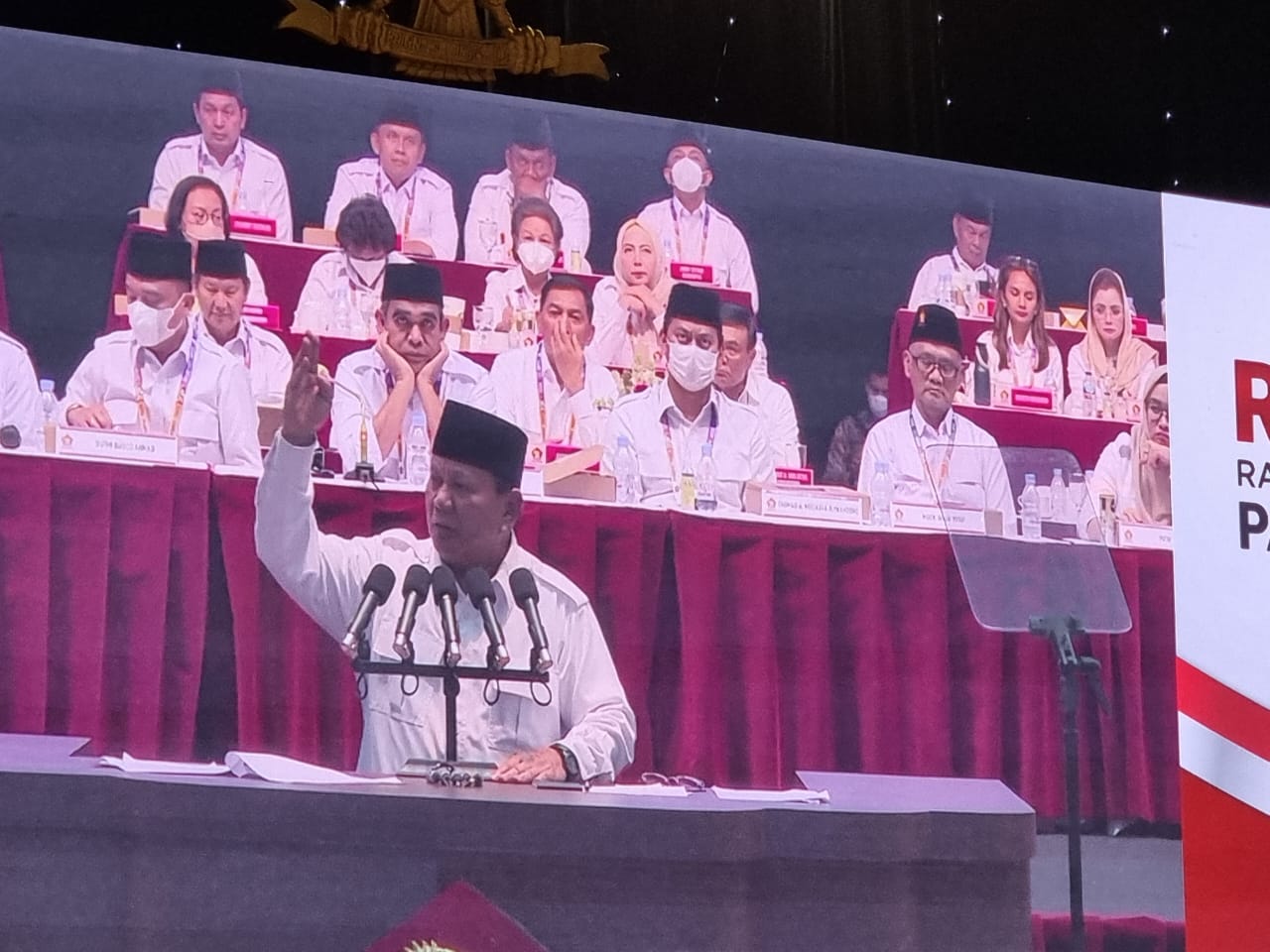 JAKARTA-Ketua Umum Partai Gerakan Indonesia Raya (Gerindra) Prabowo Subianto resmi bakal maju sebagai calon presiden 2024. Pernyataan tersebut diungkapkan Mantan Danjen Kopassu tersebut pada acara rapat pimpinan nasional (Rapimnas) Gerindra di Sentul International Convention Center, Jumat (12/8).