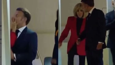 Mengutip laporan The Guardian, momen tersebut terekam oleh kamera Associated Press saat Macron dan istrinya, Brigitte Macron, bersiap turun dari pesawat di Vietnam.