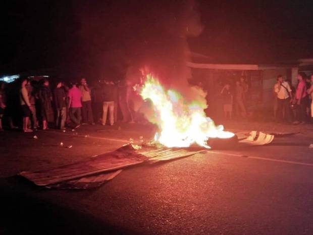 Warga yang mengetahui pristiwa tersebut berang dan akhirnya memanas. Warga memblokade jalan dengan membakar tumpukan ban bekas.
