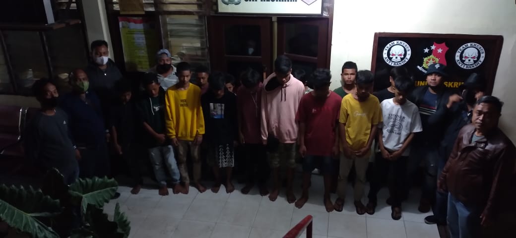 PADANGSIDIMPUAN-Satreskrim Polres Padangsidimpuan, Sumatera Utara, mengamankan belasan anak yang terlibat tawuran di depan kantor Wali Kota dan DPRD Padangsidimpuan, Jalan Merdeka, Kecamatan Padangsidimpuan Utara, Minggu (12/9/2021), dinihari.