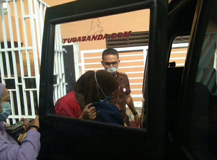 Tersangka langsung dipakaikan baju tahanan Kejari Padangsidimpuan. SM dibawa ke Lapas Salembue Padangsidimpuan dengan menggunakan mobil Kejari pafa pukul 14.50 WIB. (zn)