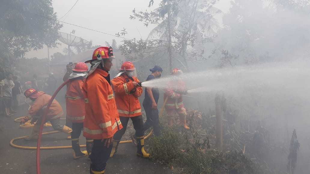 Petugas Pemadam Kebakaran (PMK) Pemko Pematangsiantar yang mengerahkan 3 unit mobil pemadam, dan 1 unit dari PT STTC , berhasil memadamkan kobaran api sekitar 2 jam setelah kebakaran. (zn)