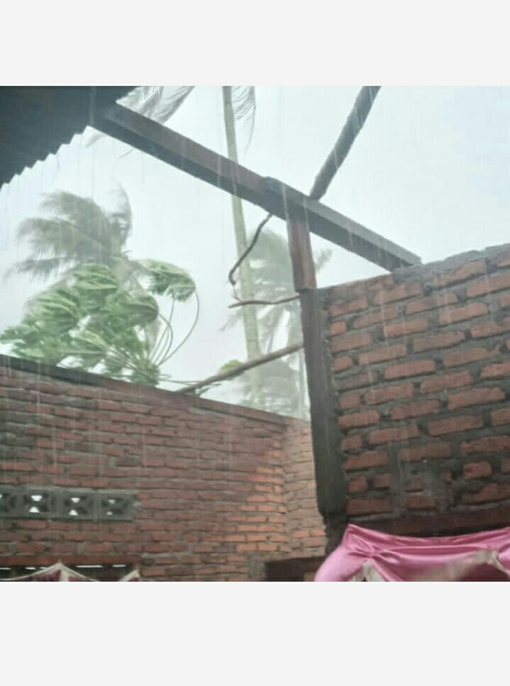Akibat kejadian tersebut, Sahrul harus mengungsi di rumah salah seorang keluarganya. Menurut pantuan wartawan, nyaris seluruh bangunan atap rumah rusak akibat disapu angin puting beliung.