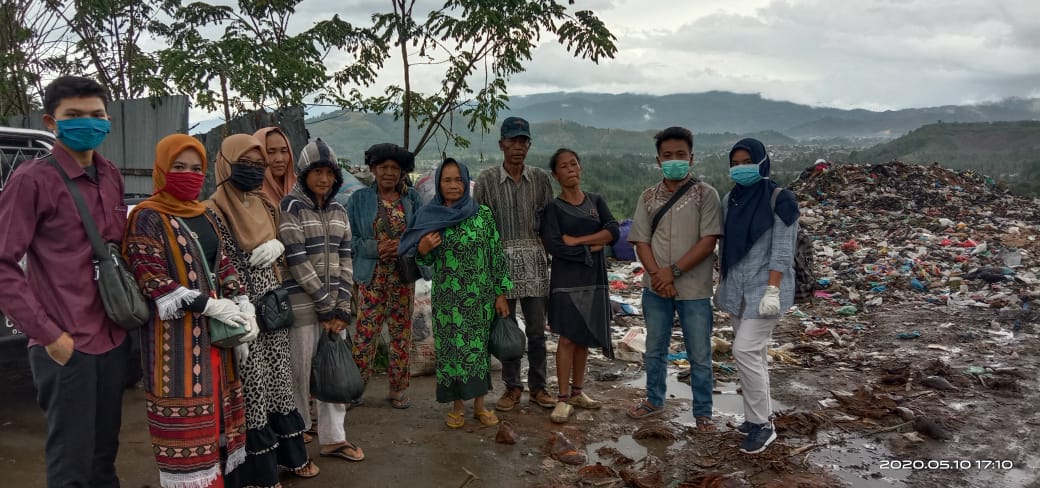 PADANGSIDIMPUAN-Ikatan Keluarga Besar (IKAB) Yayasan Pendidikan Karya Setia (YPKS) berbagi puluhan paket sembako kepada pemulung dan masyarakat di Tempat Pembuangan Akhir (TPA) Batu Bola di Kecamatan Padangsidimpuan Batunadua, Kota Padangsidimpuan, Minggu (10/5/2020).