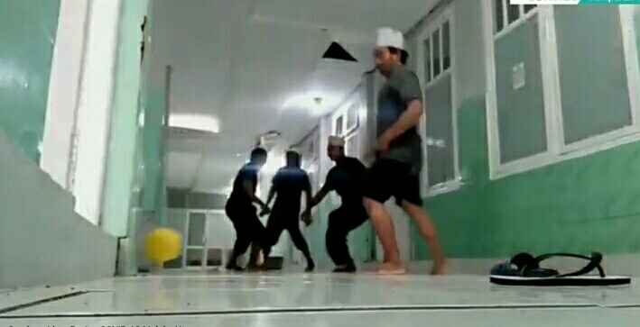 TERNATE – Sejumlah pasien positif COVID-19 di Ternate, Maluku Utara merekam aktivitas mereka bermain sepak bola di Koridor Ruang Isolasi RSUD Cahasan Bosoirie Ternate.