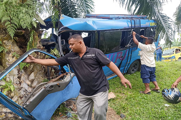 Akibat kecelakaan ini, Bus KPUJ yang datang dari arah Kisaran oleng setelah dinding bagian belakang ditabrak Maju Luhur yang datang dari arah Medan. Bus KUPJ lalu banting stir sehingga menabrak pohon sawit.