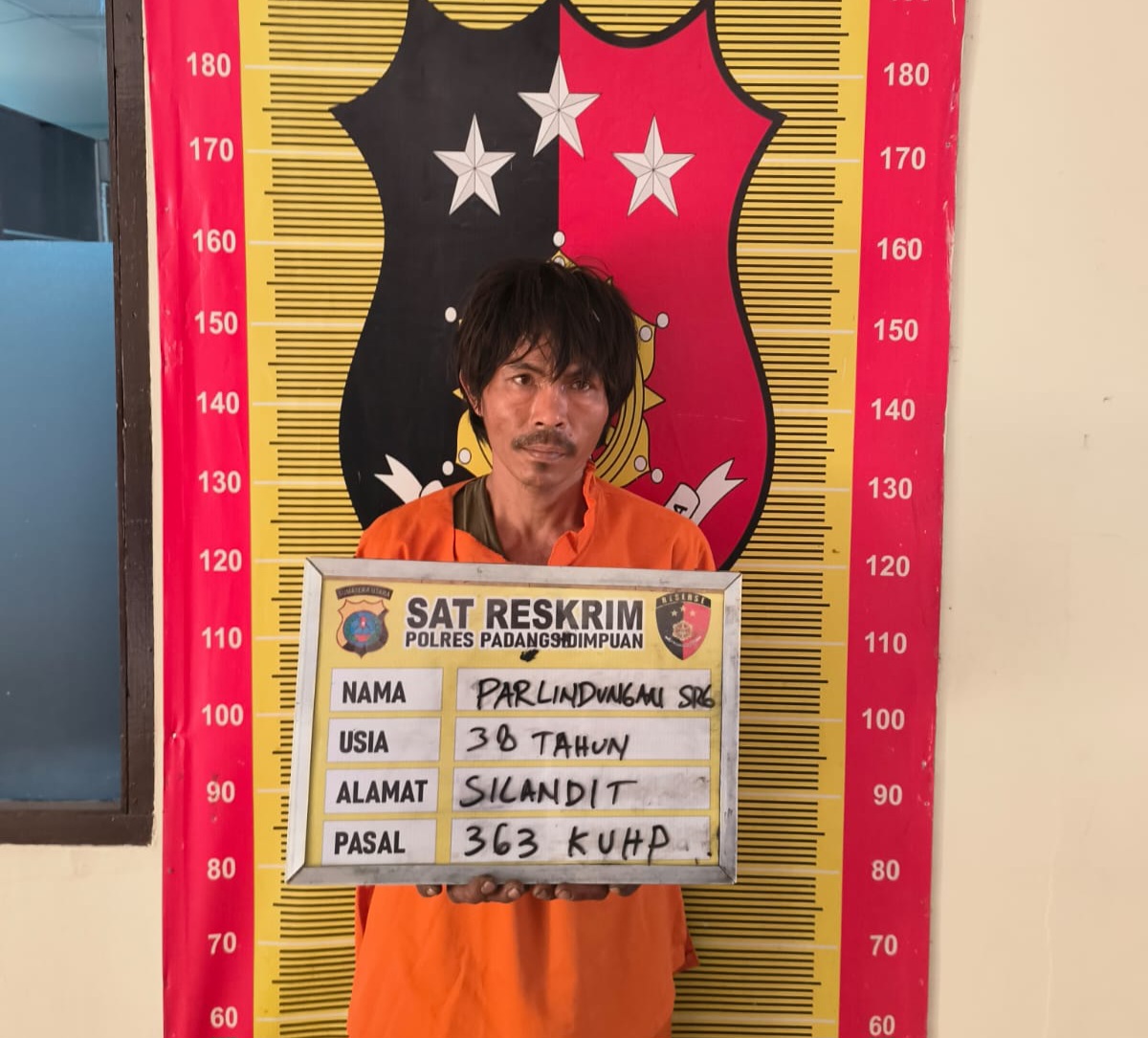 PADANGSIDIMPUAN-Hanya karena mencuri potongan besi kanopi milik Liong Tjun Pin, seorang warga Kelurahan Silandit, Kecamatan Padangsidimpuan Selatan, Kota Padangsidimpuan, Sumatera Utara, ditahan di Mapolres Padangsidimpuan.