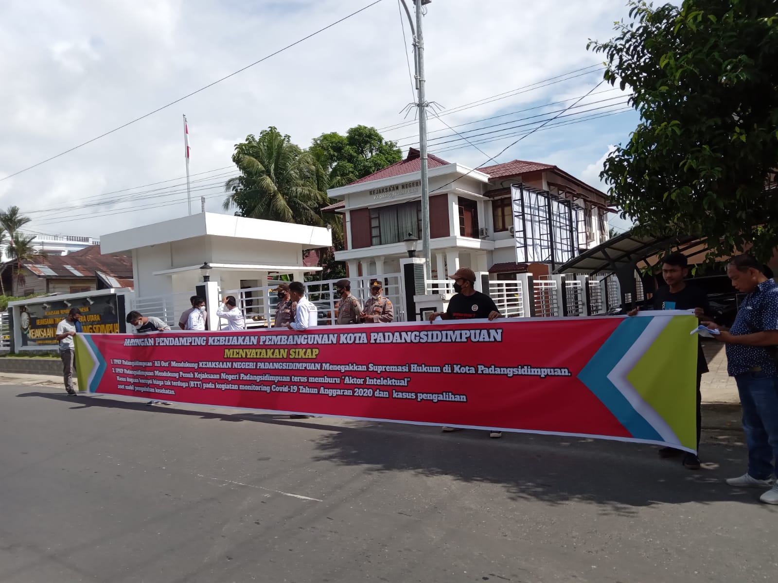 Aksi itu untuk mendesak pihak penegak hukum yang berkantor di Jalan Serma Lian Kosong, Kecamatan Padangsidimpuan Utara, segera menetapkan oknum Kepala Dinas Kesehatan Kota Padangsidimpuan jadi tersangka dugaan korupsi Biaya Tidak Terduga (BTT) Tahun Anggaran 2020 di Dinas Kesehatan.