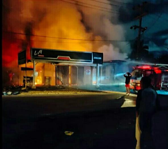 PADANGSIDIMPUAN-Satu unit rumah grosir milik Baginda Pulungan (52) di Lingkungan I, Lorong 2, Desa Simirik, Kecamatan Batunadua, Kota Padangsidimpuan, Sumatera Utara (Sumut), hangus terbakar, Minggu (7/6/2020), pukul 04.00 WIB.