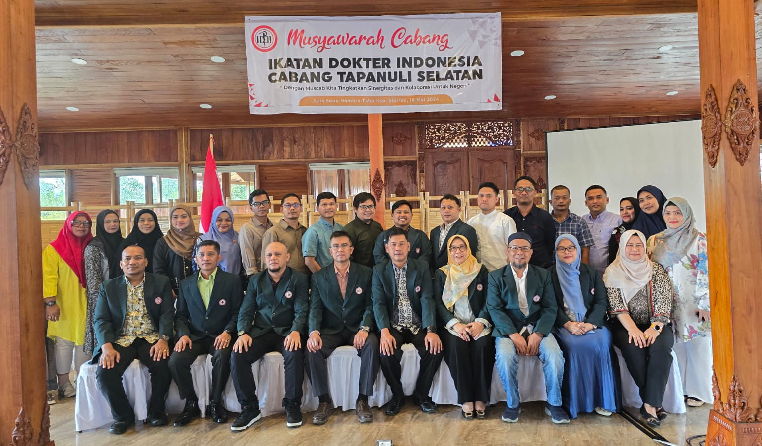 TAPANULI SELATAN- dr Rudi Iskandar Harahap MKes terpilih secara aklamasi memimpin Ikatan Dokter Indonesia (IDI) Cabang Kabupaten Tapanuli Selatan (Tapsel) dalam Musyawarah Cabang IDI tahun 2024 yang digelar di Aula Sopo Namora Tabo Coffee Sipirok, Kamis (16/5/2024).