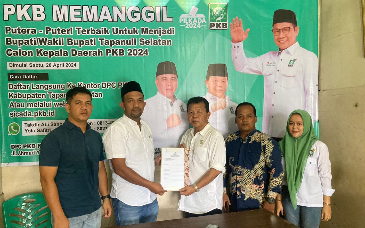 Ketua Tim Pendaftaran dan Penjaringan Bakal Calon Kepala Daerah DPC PKB Tapsel, Takdir Alisyahbana menyampaikan bahwa pihaknya sudah membuka pendaftaran Bacakada Kabupaten Tapsel pada 20 April – 10 Mei 2024. Ia mengatakan, hingga saat ini sudah 4 kandidat yang telah mendaftar ke DPC PKB Tapanuli Selatan.