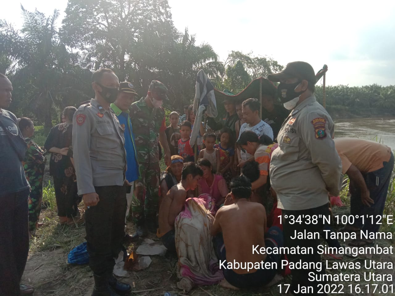 Selanjutnya, Kapolsek memerintahkan anggota Polsubsektor Simangambat ke TKP. Ketika tiba di TKP pukul 19.30 WIB, dilakukan pencarian oleh Polri dengan menggunakan perahu bot. Namun, hingga pukul 23.30 WIB belum di temukan.