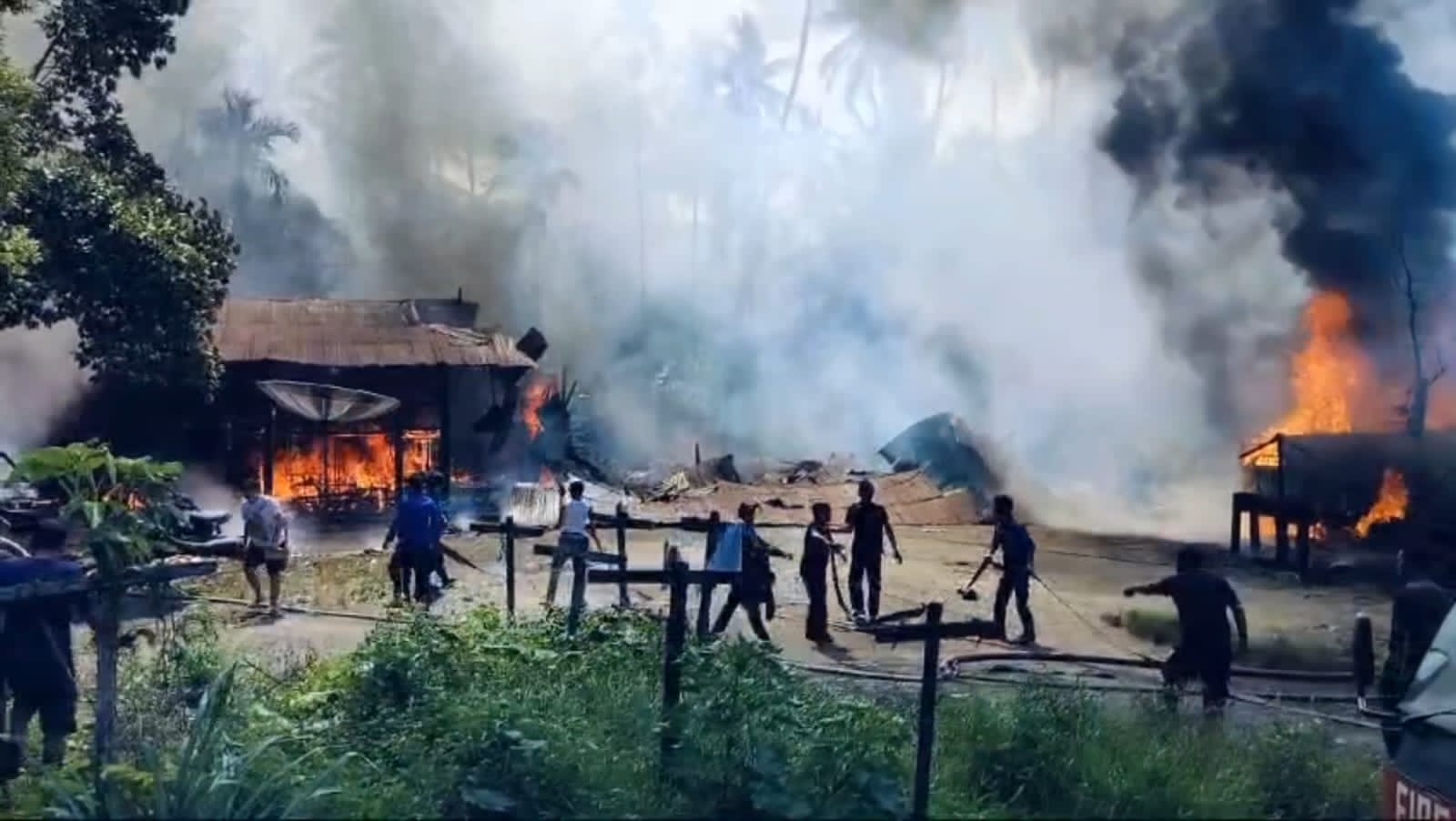 PADANGSIDIMPUAN- Sedikitnya 5 unit rumah dan 3 unit bengkel hangus terbakar di Jalan Imam Bonjol Kelurahan Padangmatinggi, Kecamatan Padangsidimpuan Selatan, Kota Padangsidimpuan, Senin (6/5/2024).