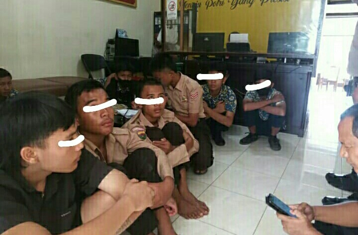Akibat, belasan siswa diamankan, sedangkan satu orang warga luka-luka, Sabtu (26/3/2022).
