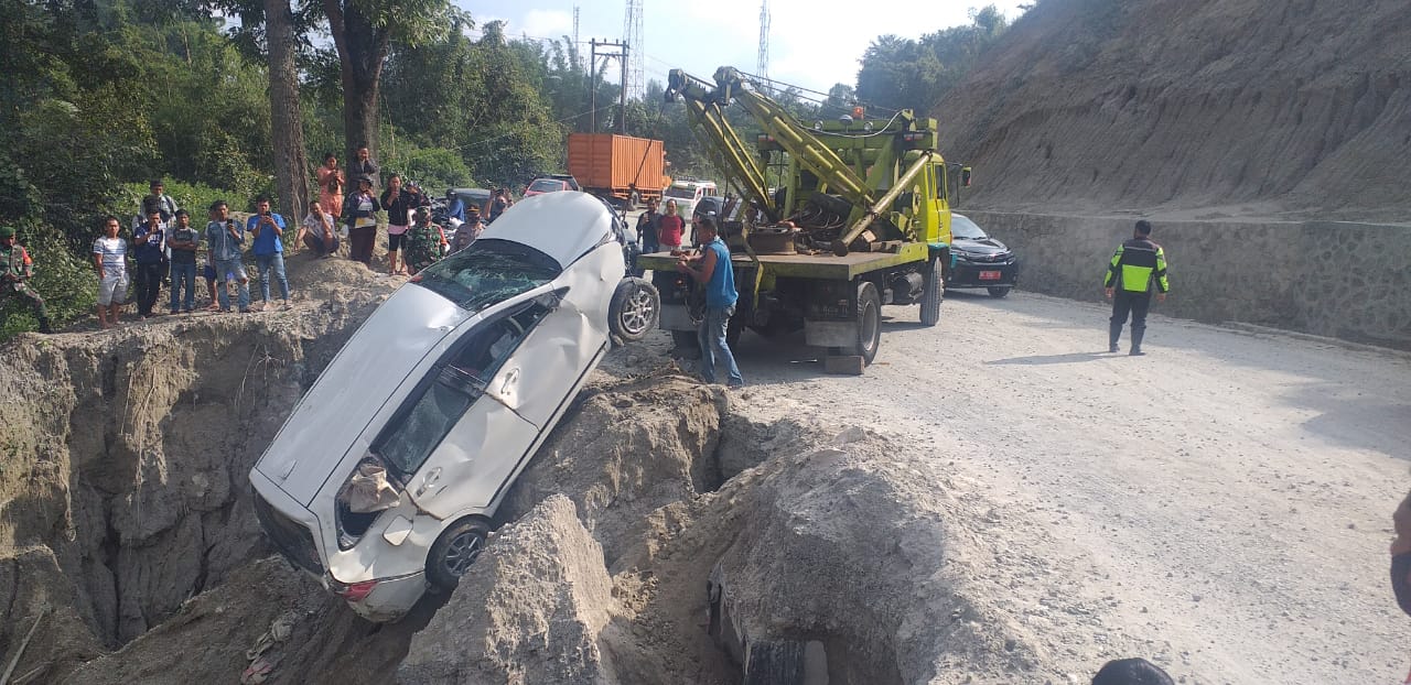Tidak ada korban jiwa dalam kecelakaan lalulintas tunggal tersebut namun mobil yang masuk jurang sedalam 20 meter tersebut mengalami rusak parah.