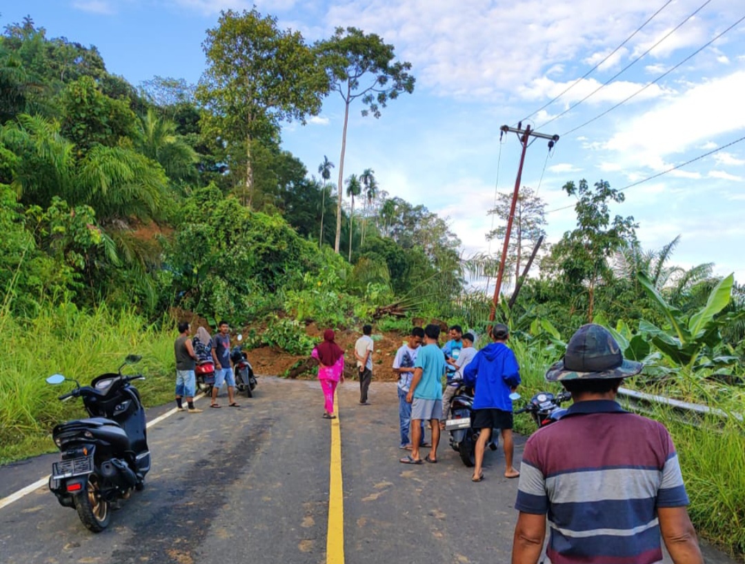 TAPANULI SELATAN-Jalan Lintas Sumatera, tepatnya di Desa Rianiate, Kecamatan Angkola Sangkunur, Kabupaten Tapanuli Selatan (Tapsel), tertutup longsor.