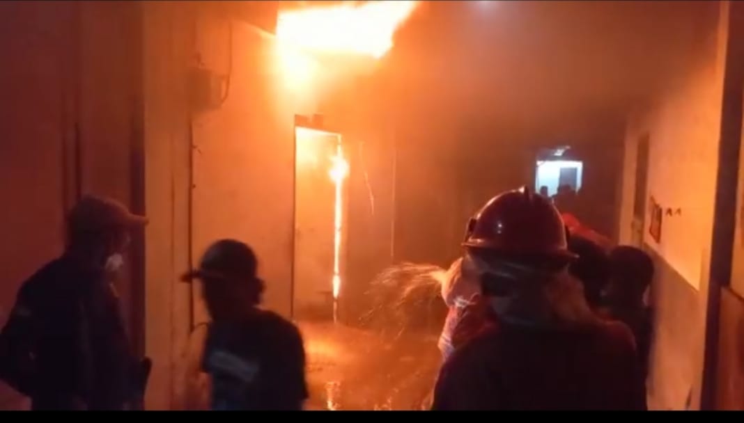 PEMATANGSIANTAR- Warga di Jalan Wahidin, Kelurahan Dwikora, Kecamatan Siantar Barat, Kota Pematangsiantar, Sumatera Utara, tiba-tiba panik melihat salah satu gudang obat milik Apotik Plus terbakar.