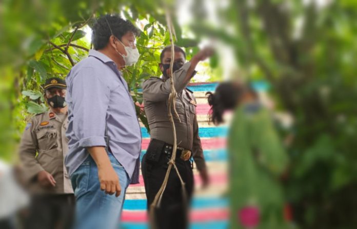 PADANGSIDIMPUAN-Dituduh mencuri kotak saweran pesta, seorang perempuan asal Kelurahan Sabungan Jae, Kecamatan Padangsidimpuan Hutaimbaru, Kota Padangsidimpuan, berinisial TH (50), ditemukan tewas tergantung di belakang rumahnya.