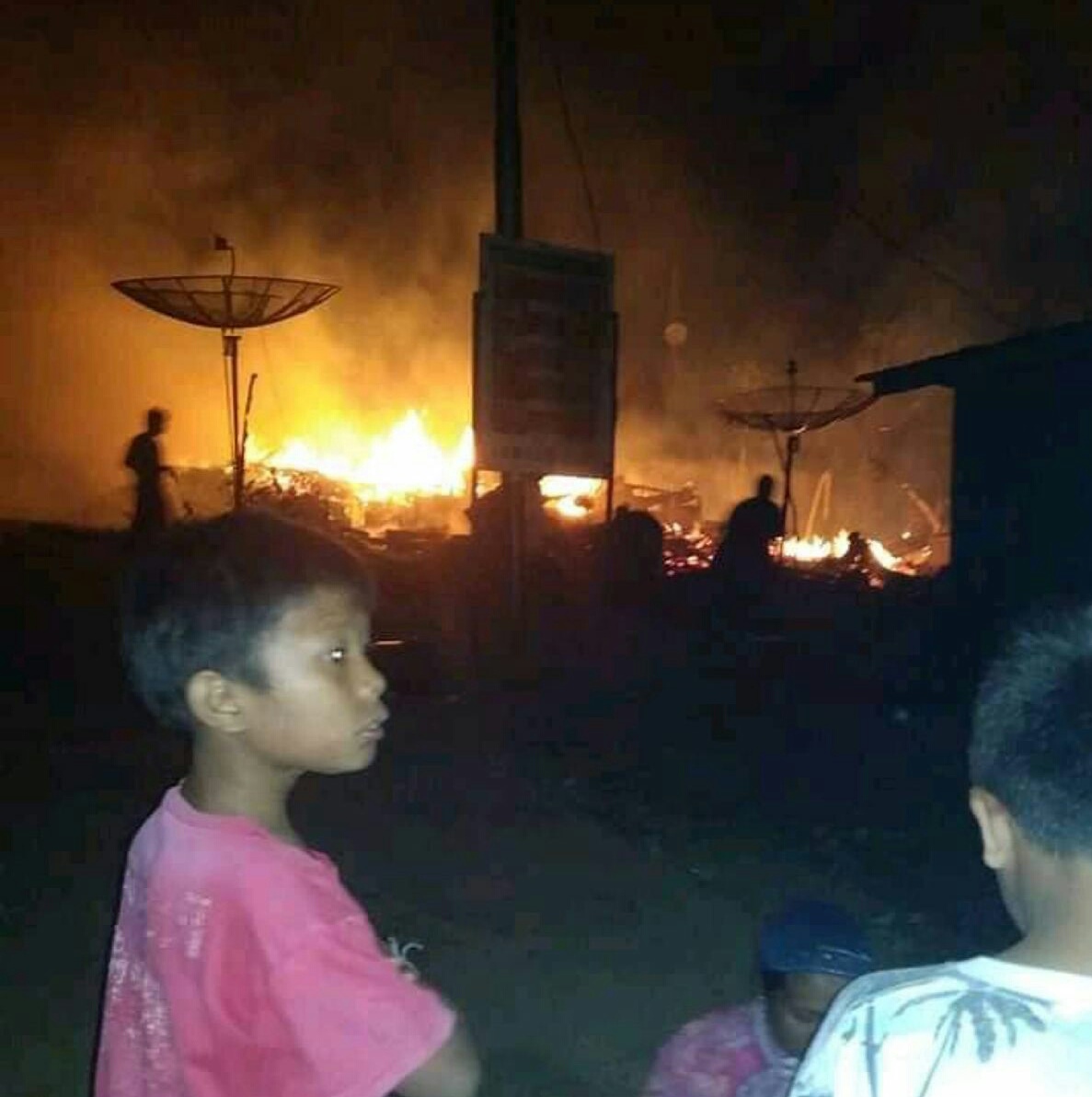 PADANGLAWAS UTARA-Kebakaran terjadi di Losung Batu, Kecamatan Padang Bolak, Kabupaten Padanglawas Utara, Sumatera Utara (Sumut). Akibatnya, tiga rumah warga hangus terbakar, Jumat (18/2/2022) malam.