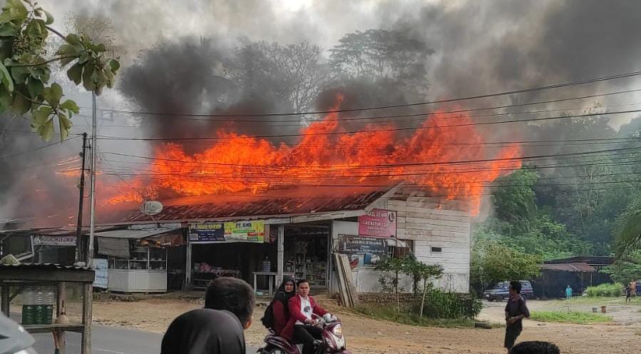 PADANGSIDIMPUAN- Kios 7 pintu terbakar di Lingkungan VIII, Kelurahan Batunadua Jae, Kecamatan Padangsidimpuan Batunadua, Kota Padangsidimpuan, Selasa (2/4/2024).