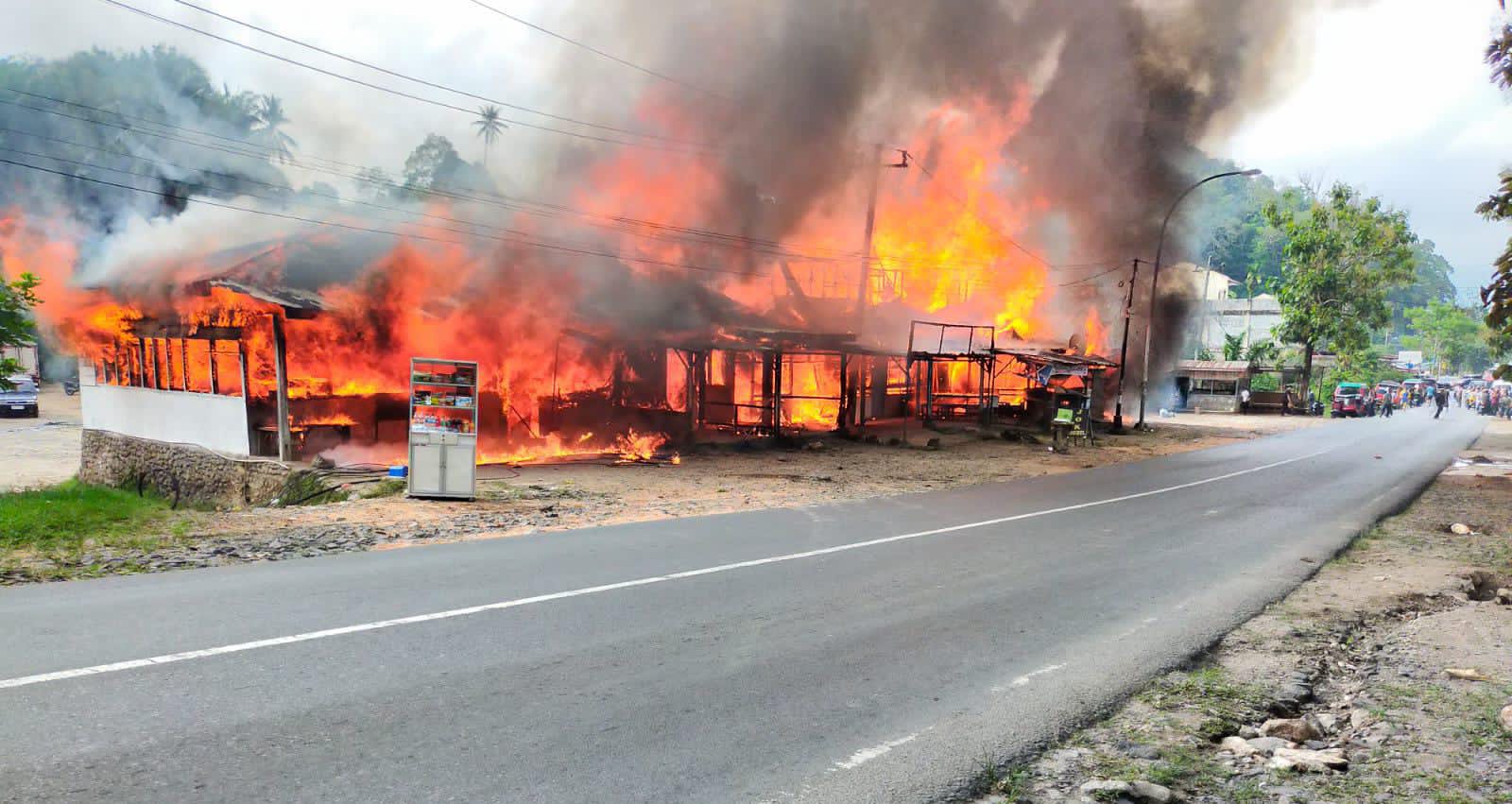 PADANGSIDIMPUAN- Kios 7 pintu terbakar di Lingkungan VIII, Kelurahan Batunadua Jae, Kecamatan Padangsidimpuan Batunadua, Kota Padangsidimpuan, Selasa (2/4/2024).
