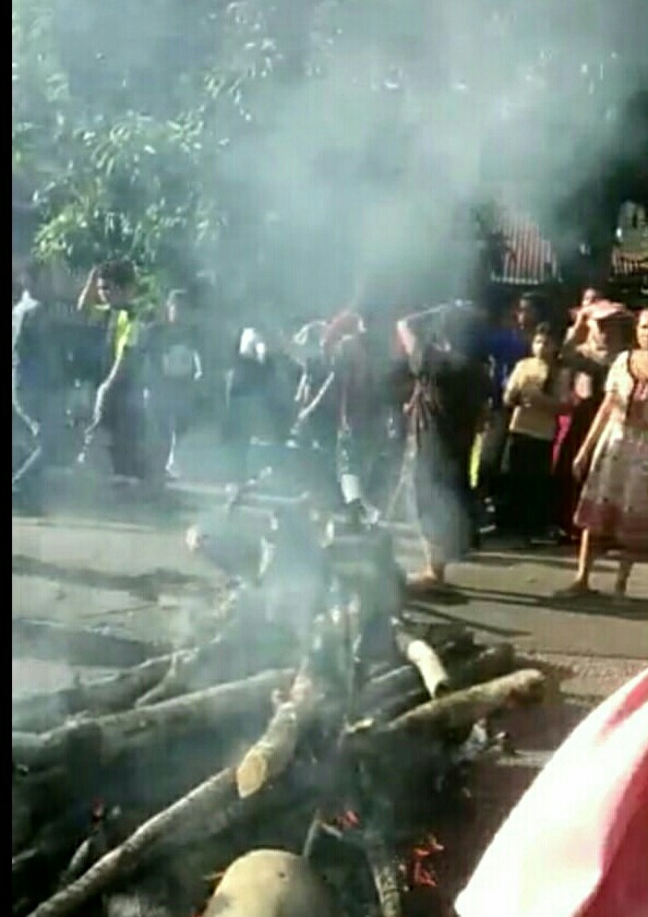 TAPANULI SELATAN-Sejumlah warga sempat memblokade Jalan Lintas Sumatera Utara (Sumut) di depan Polsebsektor Batang Angkola, Desa Aek Libung, Kecamatan Sayurmatinggi, Kabupaten Tapanuli Selatan (Tapsel), Kamis (25/6/2020).