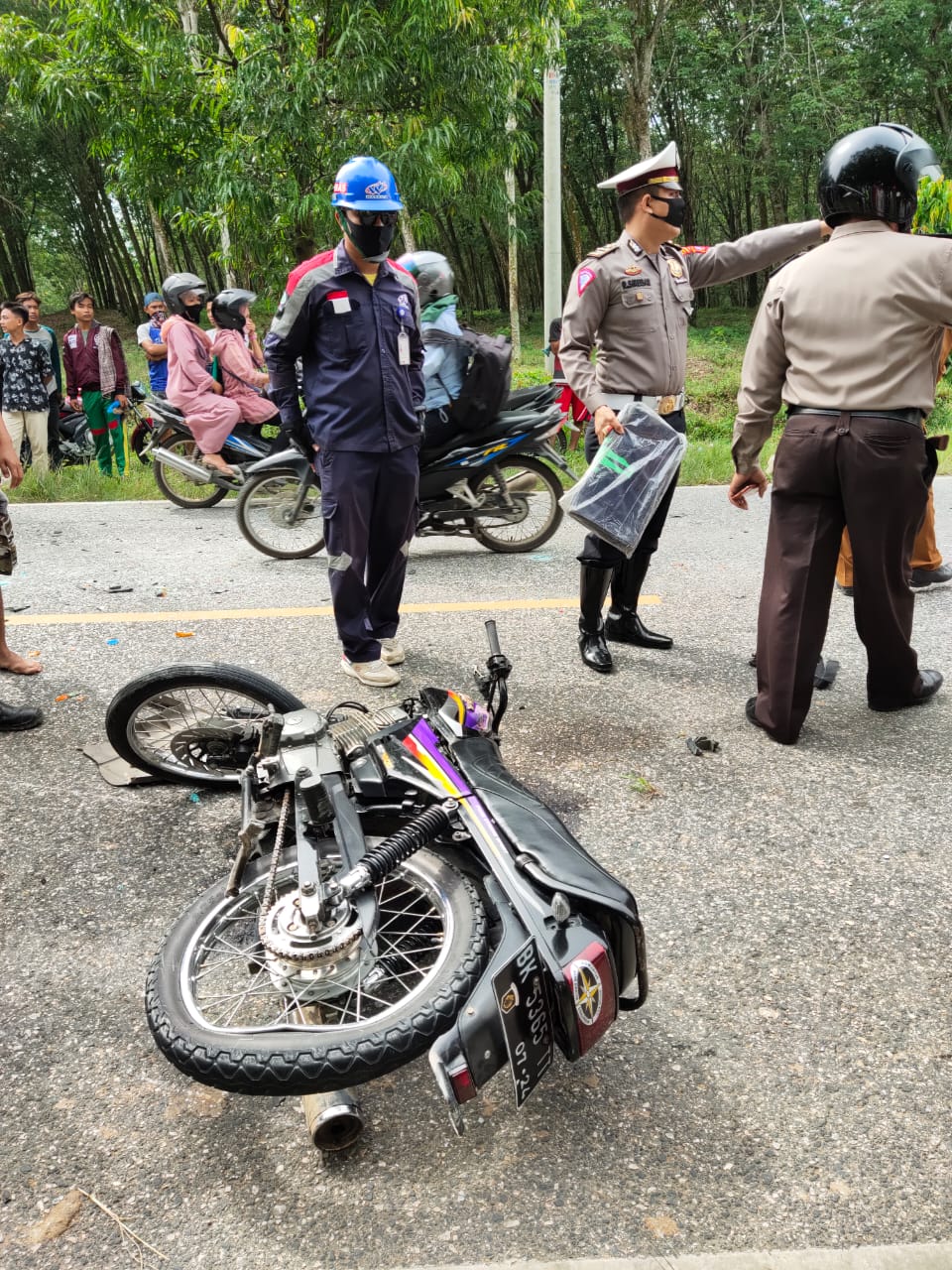 SIMALUNGUN-Dua tewas dan seorang luka ringan akibat kecelakaan lalulintas (lakalantas) antara sepeda motor dan mobil box di ruas jalan nasional Medan-Pematangsiantar Kilometer 11-12 Desa Tapian Dolok, Kecamatan Dolok Batu Nanggar, Kabupaten Simalungun, Senin (11/5/2020).