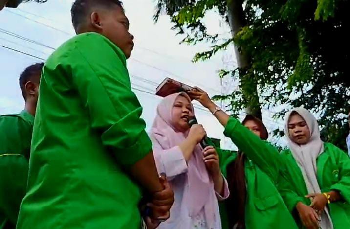 PADANGSIDIPUAN (LENSAKINI)-Ketua DPRD Padangsidimpuan, Sri Fitrah Munawaroh nekat bersumpah dengan Alquran di hadapan ratusan mahasiswa UIN Syahada yang menggelar aksi unjuk rasa di depan kantor DPRD.