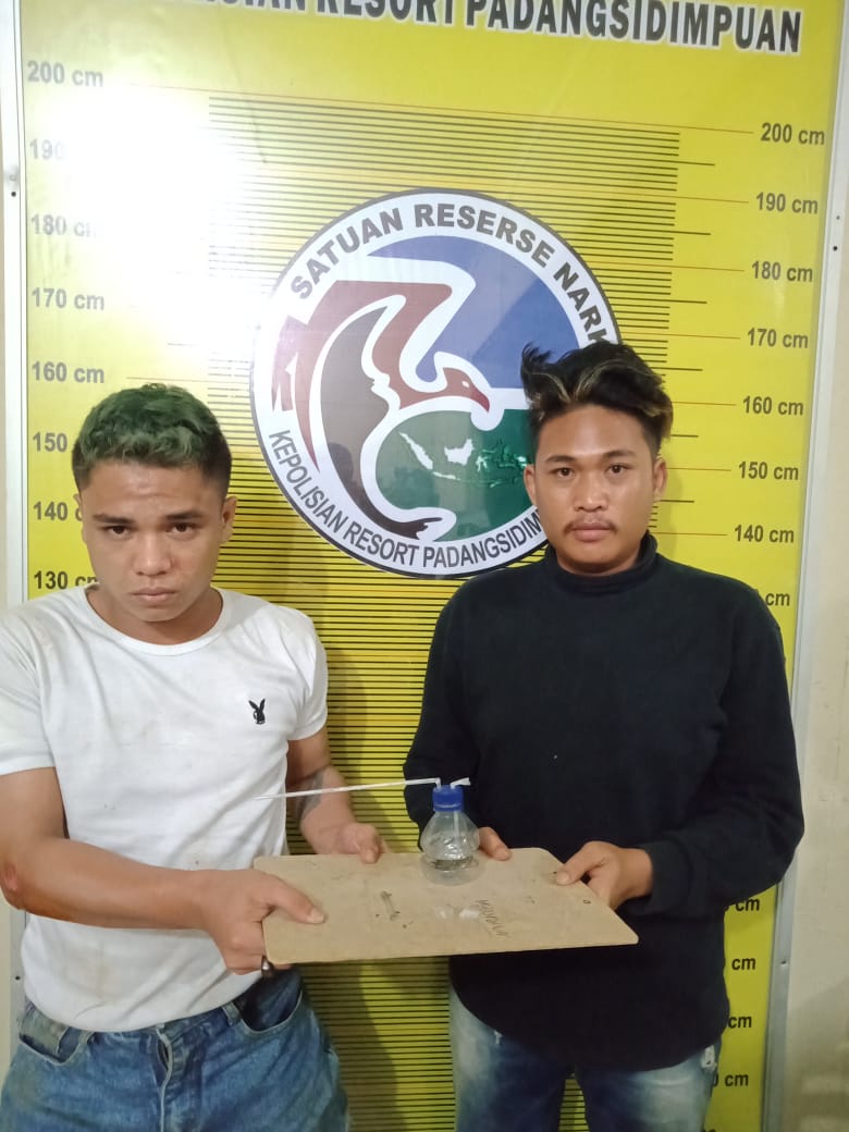 Spontan, keduanya langsung ditangkap Satnarkoba Polres Padangsidimpuan. Mereka adalah, Ridwan Syahputra Harahap (26) warga Jalan Mawar, Kelurahan Ujung Padang, Kecamatan Padangsidimpuan Selatan Kota Padangsidimpuan dan Rizky Wijaya Siregar warga Jalan SM Raja, Lingkungan III, Kelurahan Sitamiang.