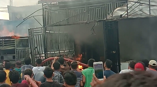 MANDAILING NATAL- Satu unit swalayan yang terletak di Huraba I, Kecamatan Siabu, Kabupaten Mandailing Natal (Madina) Sumatera Utara (Sumut) terbakar, Kamis Sore 28/1/2021.