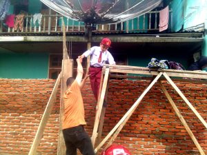 Perlahan-lahan, tangan mungil Atta memegang kayu yang dijadikan tangga untuk memanjat. Langkahnya juga harus ekstra hati-hati, karena anak tangga tersebut sudah using dan bisa membahayakan dirinya.