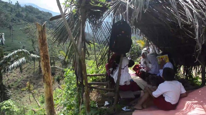 Dikutip dari Detik.com, di lokasi, para siswa mengerjakan tugas dengan beralaskan papan dalam mengerjakan tugas serta daun pohon aren sebagai atap untuk berteduh. Jarak dari sekolah dengan lokasi tempat mereka mengerjakan tugas secara kelompok lebih dari 4 kilometer.