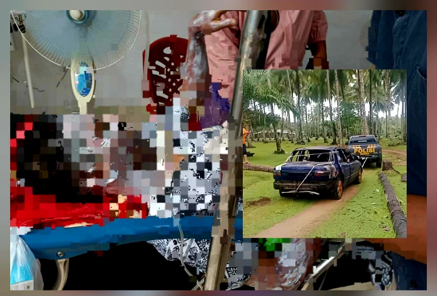 Setelah api berhasil dipadamkan, mobil yang diduga mengangkut BBM ilegal itu diduga sengaja disembunyikan ke kebun kelapa agar tidak diketahui polisi.