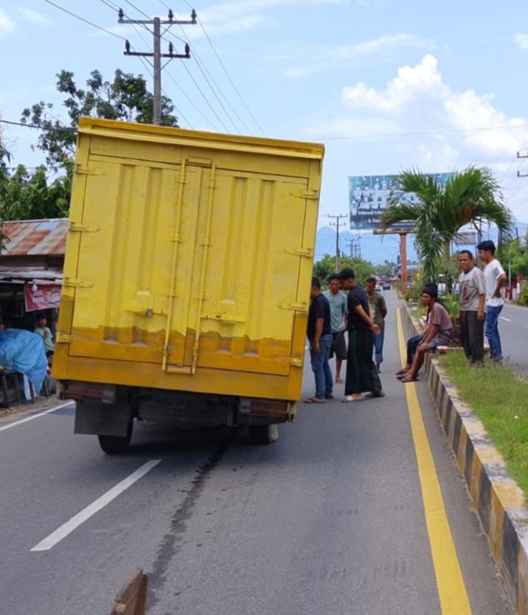 Informasi yang diperoleh, mobil jenis Mitsubishi L300 tersebut diduga mengalami hilang kendali saat melaju di jalur dua. Kendaraan kemudian menabrak pembatas jalan atau trotoar tengah yang memisahkan dua jalur.