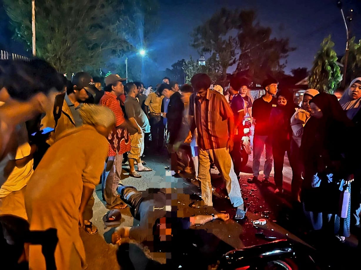 PADANGSIDIMPUAN-Dua orang pengendara sepedamotor bertabrakan di depan makam pahlawan di Jalan Melati, Kelurahan Ujung Padang, Kecamatan Padangsidimpuan Selatan, Kota Padangsidimpuan, Jumat (23/1), pukul 21.00 WIB.