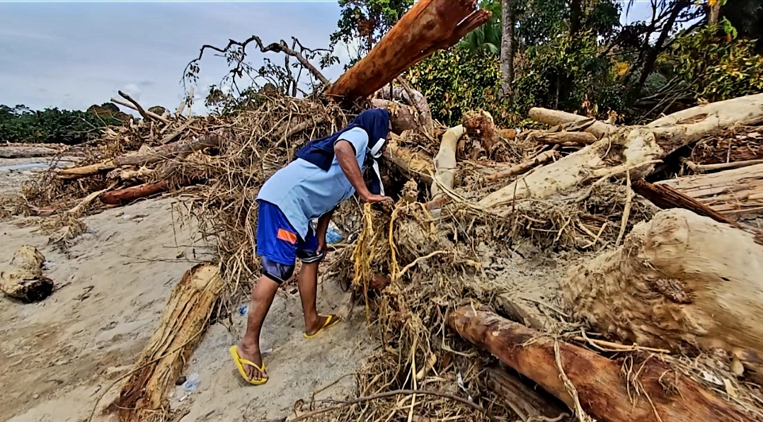 Pada saat banjir, kata Mahmudin, ratusan kubit kayu mengapung terbawa arus. Bahkan, gelondongan itu juga merusak banyak rumah masyarakat.”Banyak yang rusak rumah karena ditabrak kayu yang datangnya dari arah kebun sawit di gunung,”imbuhnya.