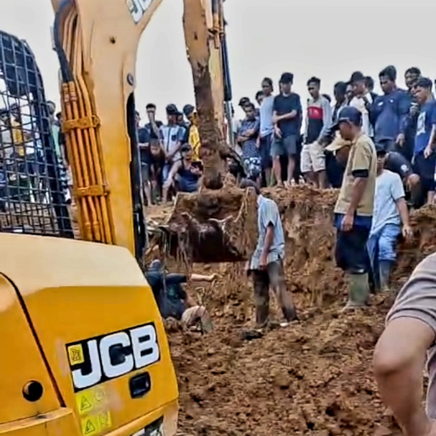 Mendengar kabar tersebut, ia bersama sejumlah warga langsung mendatangi lokasi kejadian guna memastikannya. Ketika sampai, masyarakat langsung membantu menggali tanah longsor itu.