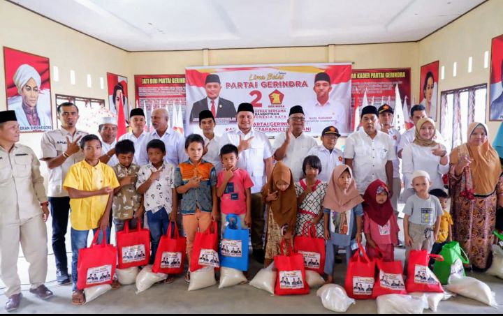 TAPANULI SELATAN-Dewan Pimpinan Cabang (DPC) Partai Gerakan Indonesia Raya (Gerindra) Kabupaten Tapanuli Selatan (Tapsel) menyantuni puluhan anak yatim. Aksi tersebut dalam rangka memperingati HUT Partai Gerindra ke-15.