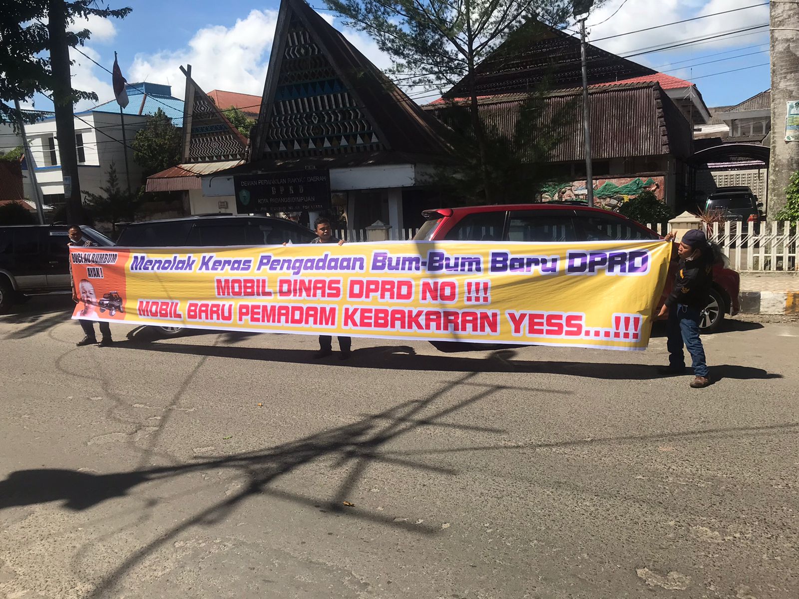Protes Pengadaan Mobil Dinas, Bung Rambe Bentangkan Spanduk di Depan DPRD Sidimpuan, ini Kata Warga