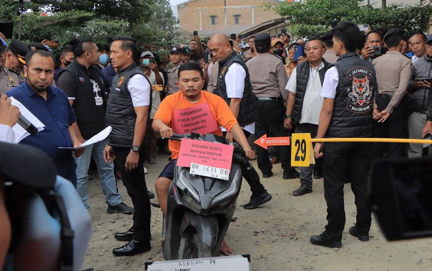 Terduga Pelaku Pembakar Wartawan di Karo Peragakan 57 Adegan